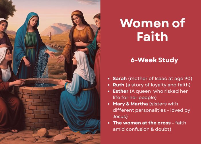 Throughout Scripture, women have played pivotal roles in God‘s redemptive story—often showing extraordinary faith amid extraordinary circumstances. This six-week study examines the lives of key women in the Bible whose courage, wisdom, and devotion continue to inspire believers today. From Old Testament figures like Sarah, Ruth, and Esther to New Testament disciples like Mary, Martha, and Priscilla, these portraits reveal God’s heart for women and their indispensable place in His kingdom work. Each session combines biographical study with thematic application, helping participants recognize God’s faithfulness across generations and find encouragement for their own faith journeys. Suitable for women’s groups or mixed study settings.